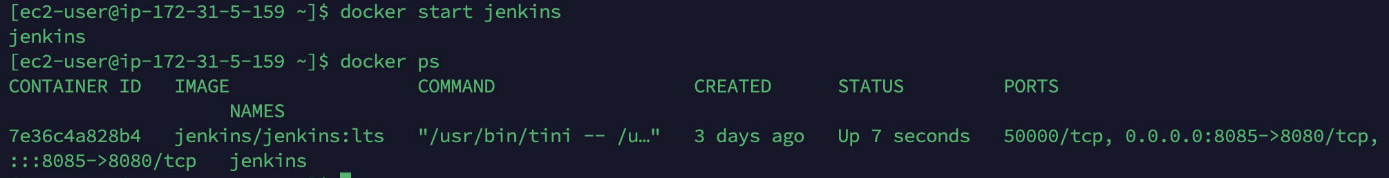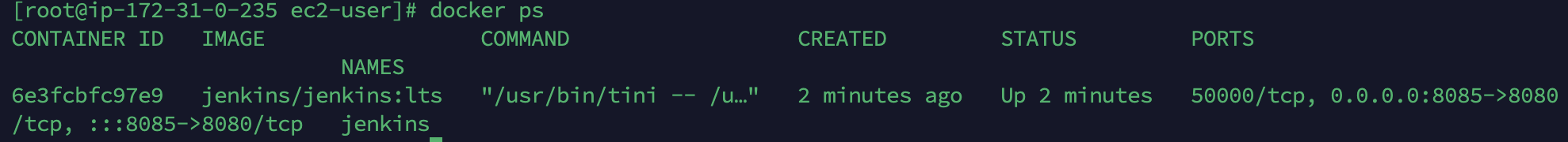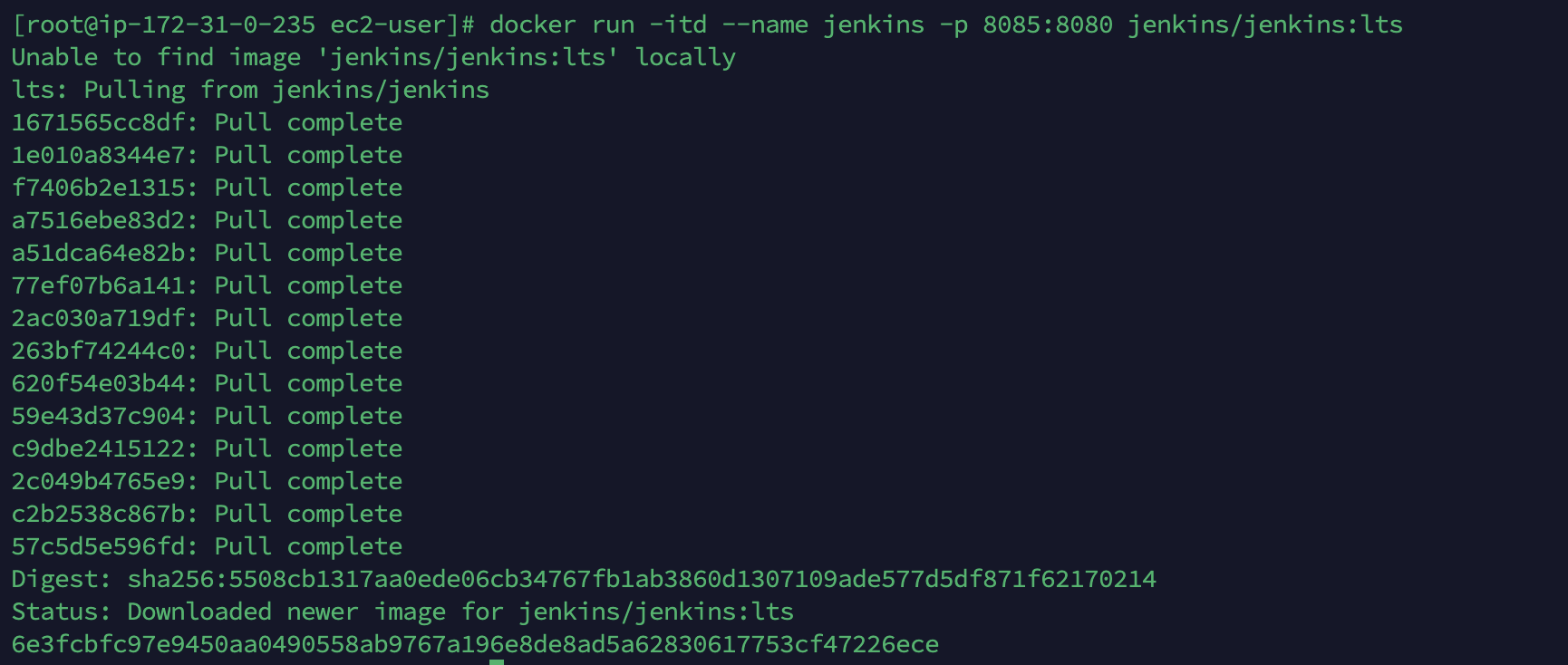 โจ๏ธ docker run -itd --name jenkins -p 8085:8080 jenkins/jenkins:lts