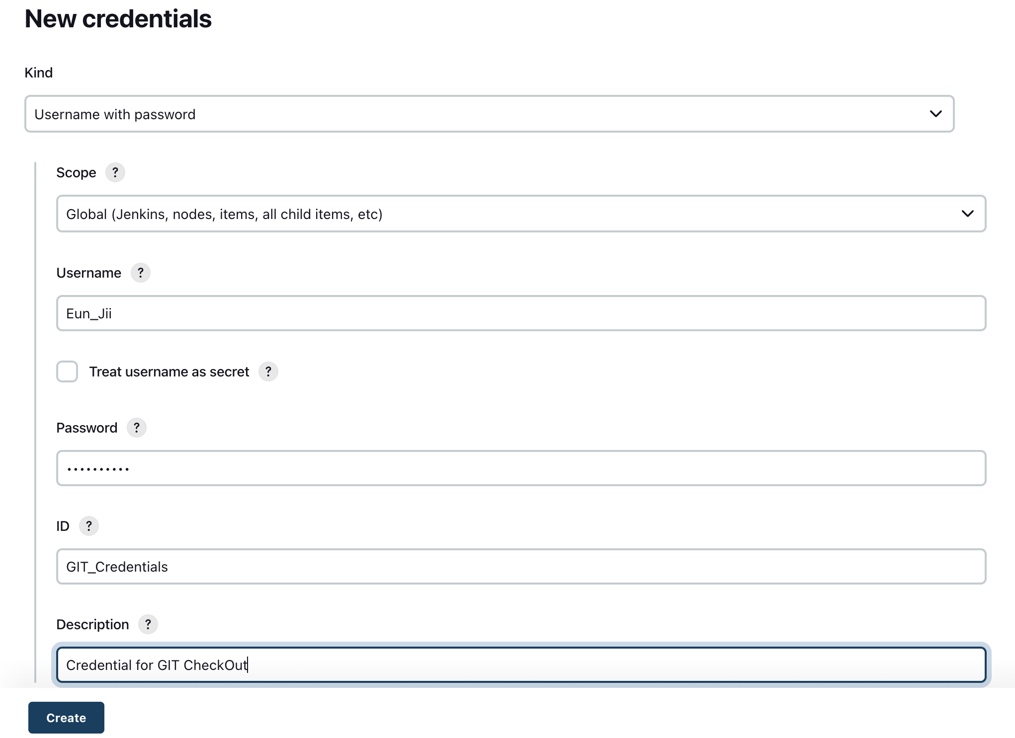 ์ ๋ณด ์ ๋ ฅํ ์ผ์ชฝ ํ๋จ " Create "