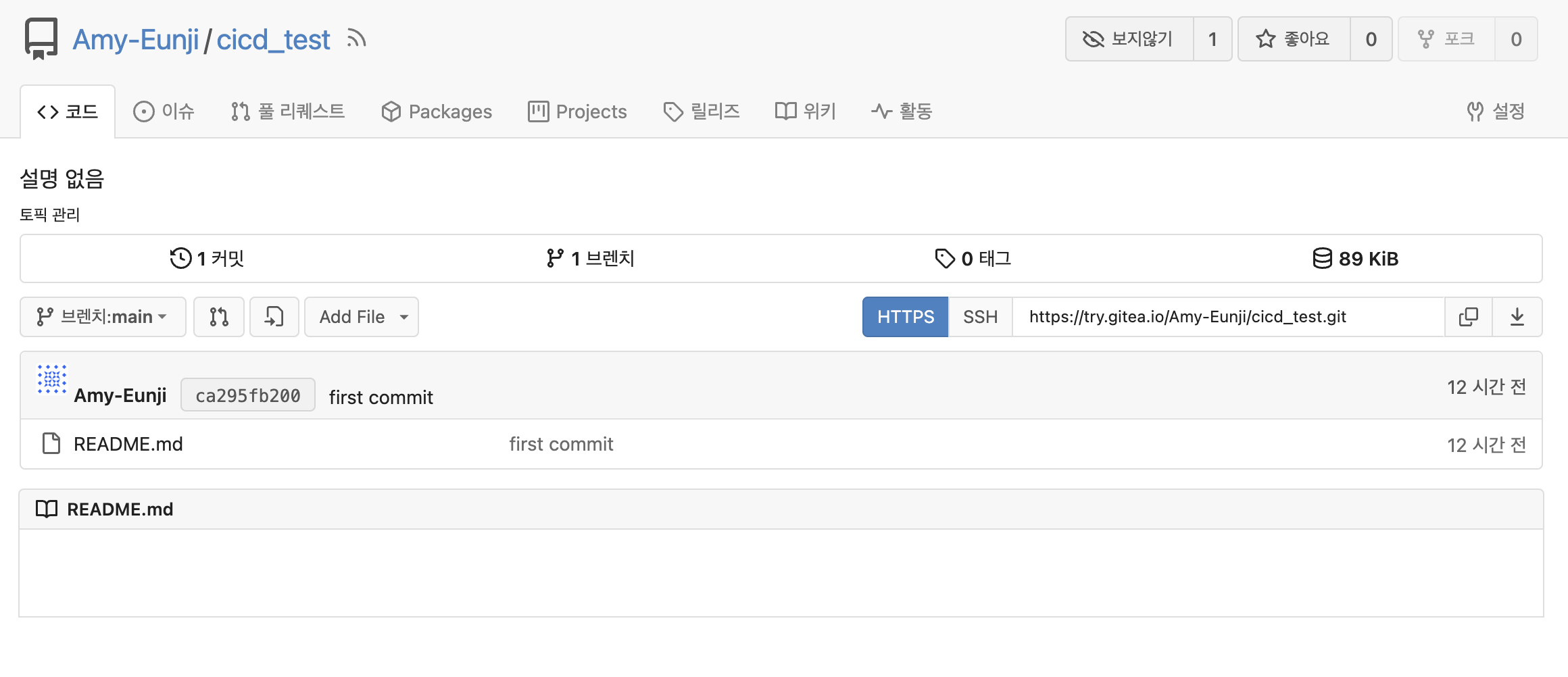 Gitea ๋ ํฌ์งํ ๋ฆฌ URL ์ ๋ ฅํ,