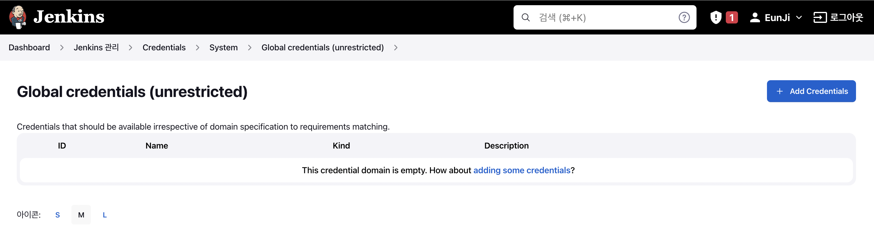 ์ค๋ฅธ์ชฝ ์๋จ " + Add Credentials " ํด๋ฆญ