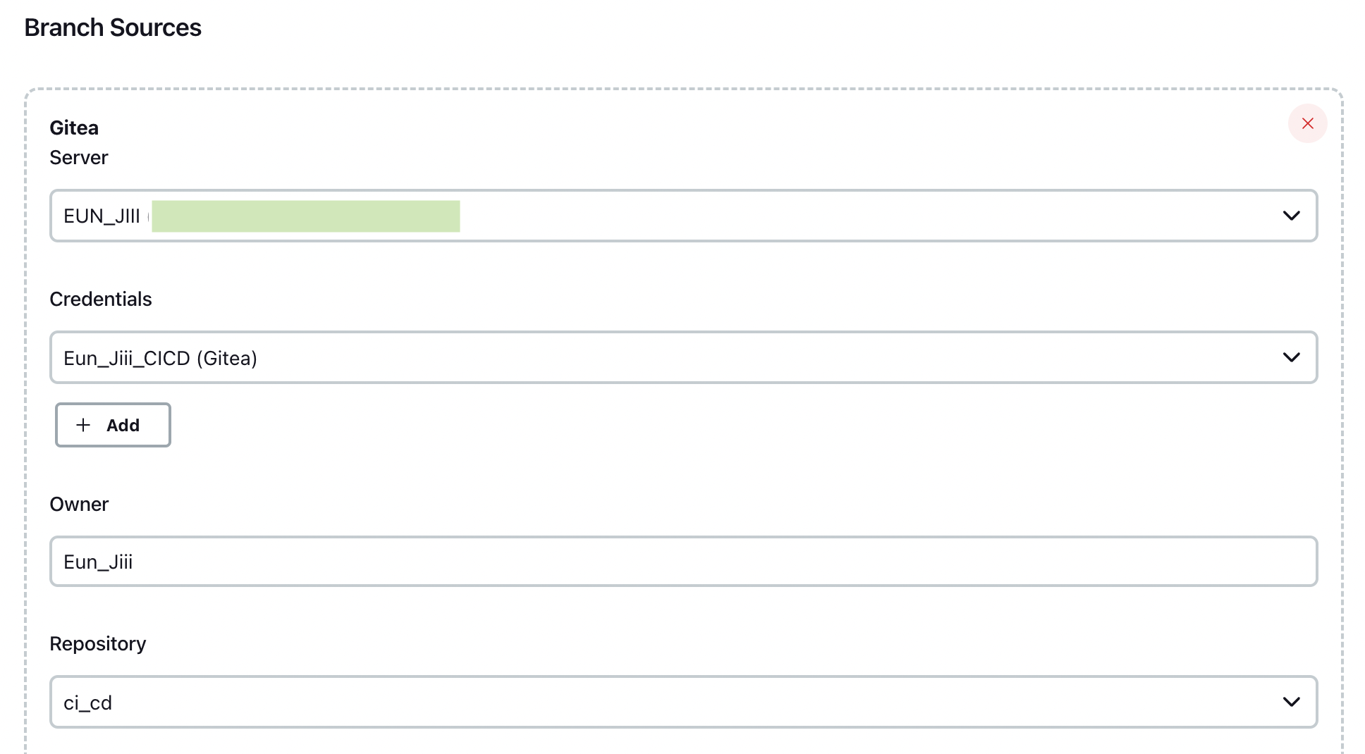 Branch Sources ์ Gitea ์ ํํ ์ ๋ณด ์ ๋ ฅํด์ฃผ๊ธฐ