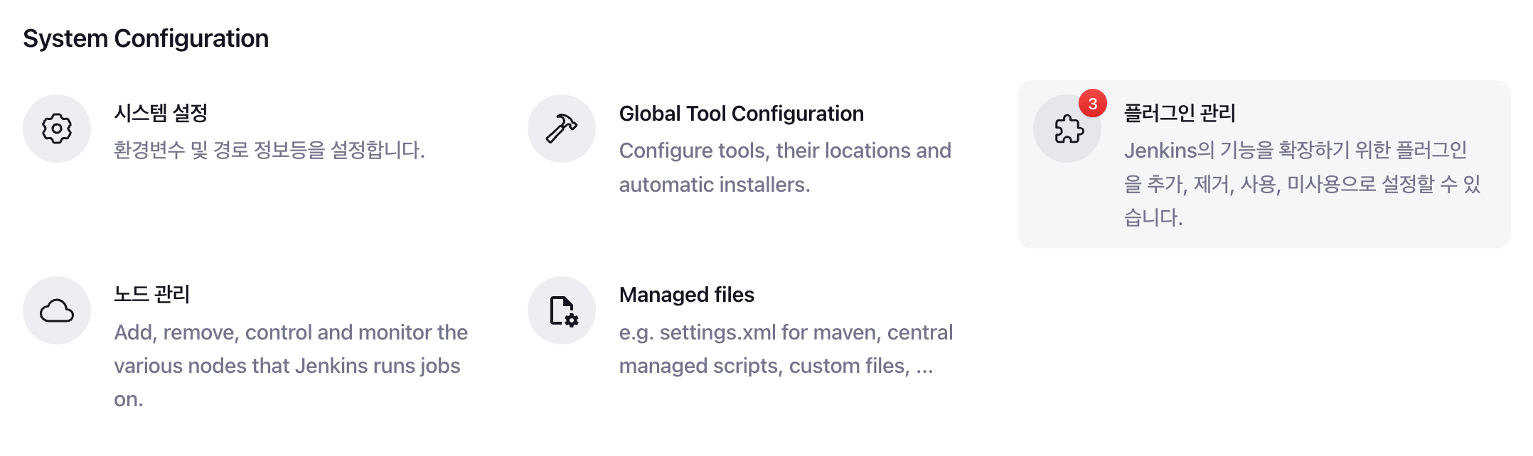 Jenkins ๋์๋ณด๋์์ Jenkins ๊ด๋ฆฌ ํด๋ฆญ