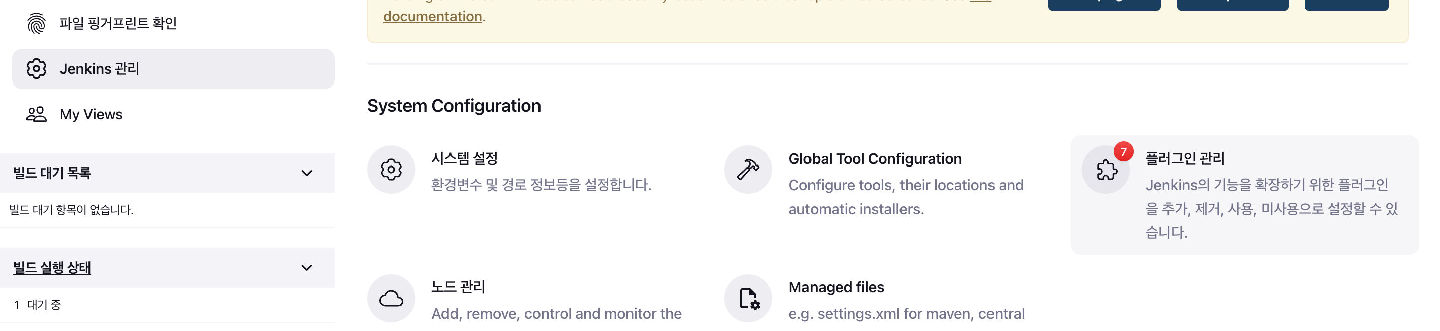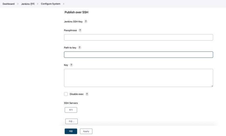 ๊ทธ๋ฌ๋ฉด Jenkins ๊ด๋ฆฌ์ ์์คํ ์ค์ ์ ์ผ ํ๋จ์ SSH Server ํญ๋ชฉ์ด ์ถ๊ฐ๋ฉ๋๋ค.