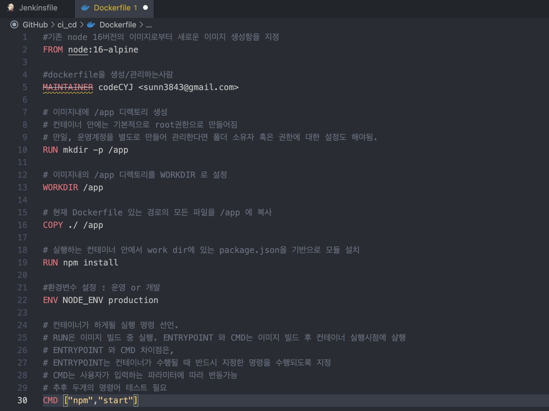 MAINTAINER ๐๋ณธ์ธ ์ด๋ฆ <๋ณธ์ธ ์ด๋ฉ์ผ>๐